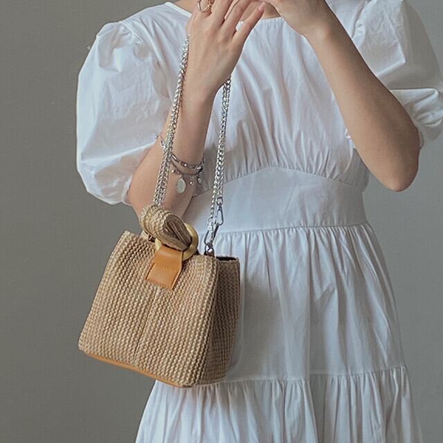ショルダーバッグ ハンドバッグ レディース 2WAY ストローバッグ ミニバッグ チェーン カジュアル 春夏 お出かけ おしゃれ 大人かわいい ベージュ