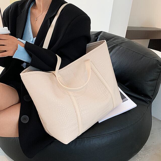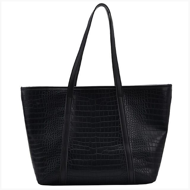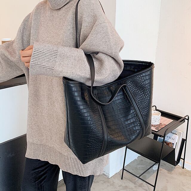 ショルダーバッグ レディース トートバッグ ビッグ 大容量 通勤 通学 おしゃれ クロコ風 フェイクレザー 型押し ブラック/ベージュ