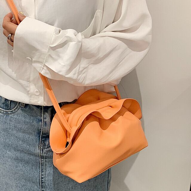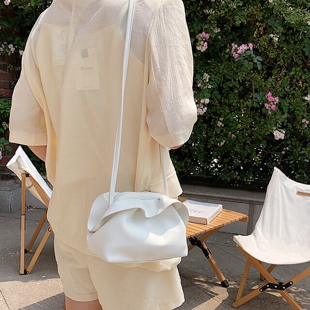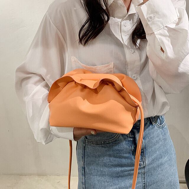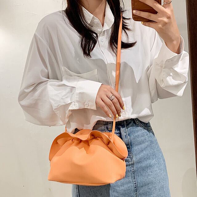 ショルダーバッグ レディース ミニバッグ フリル フェイクレザー カラバリ豊富 ブラック/ホワイト/グリーン/ブラウン/ピンク/オレンジ