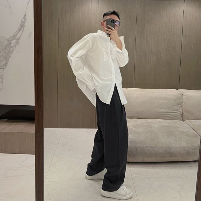 【予約販売】シャツ 長袖 無地 ベーシック メンズ シンプル ホワイト ブルー カジュアル こなれ感 お洒落 韓国 トレンド 春 秋 M/L/XL