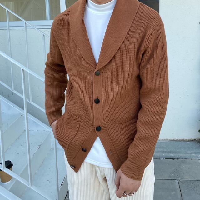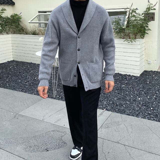 【予約販売】カーディガン 無地 ボタン Vネック 襟 オーバーサイズ メンズ ホワイト グレー ブラック ブラウン セーター こなれ感 お洒落 韓国 トレンド 秋冬 M/L/XL/2XL/3XL