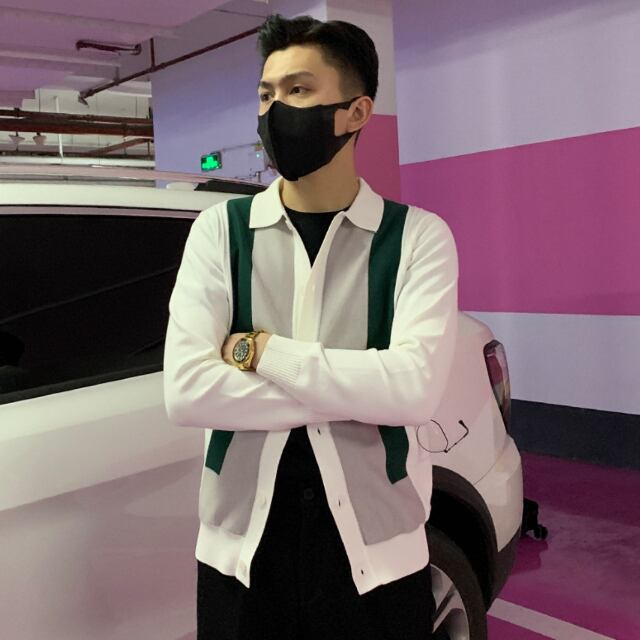 【予約販売】カーディガン レトロ ボタン 襟 アウター メンズ ホワイト ニット セーター こなれ感 お洒落 韓国 トレンド 春秋冬 S/M/L/XL/2XL/3XL