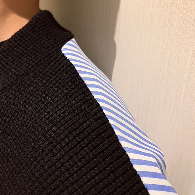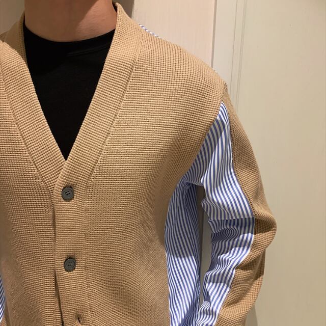 【予約販売】カーディガン ニット シャツ 異素材ミックス メンズ アウター Vネック 無地 ブラック ベージュ シンプル ベーシック カジュアル シック 男前 こなれ感 お洒落 韓国 トレンド 秋 冬 春 M/L/XL