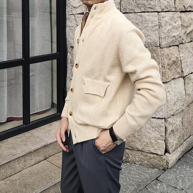 【予約販売】カーディガン 無地 ボタン ハイネック 襟 メンズ シンプル ベーシック ベージュ ブラック ブラウン セーター こなれ感 お洒落 韓国 トレンド 秋冬 M/L/XL/2XL/3XL
