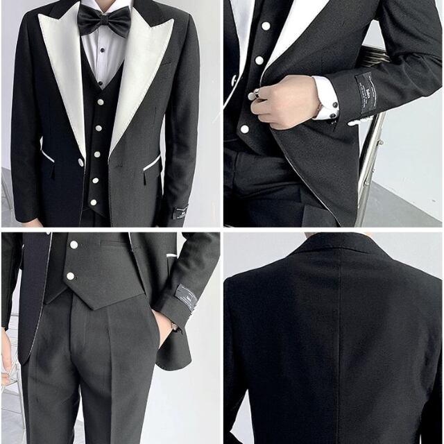 【予約販売】メンズ セットアップ 3点セット スーツ ベスト バイカラー シック スリム 男前 ブラック ブルー 黒 シングル フォーマル ジャケット パンツ セット クラシック レトロ パーティ 二次会 同窓会 結婚式 韓国 トレンド 大きいサイズ M/L/XL/2XL/3XL