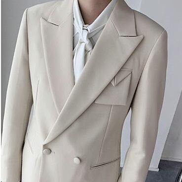 【予約販売】メンズ セットアップ スーツ 無地 ダブル ポケット シック スリム 男前 オフホワイト ジャケット パンツ セット ビジネス 通勤 フォーマル パーティ 二次会 同窓会 結婚式 韓国 トレンド 大きいサイズ M/L/XL