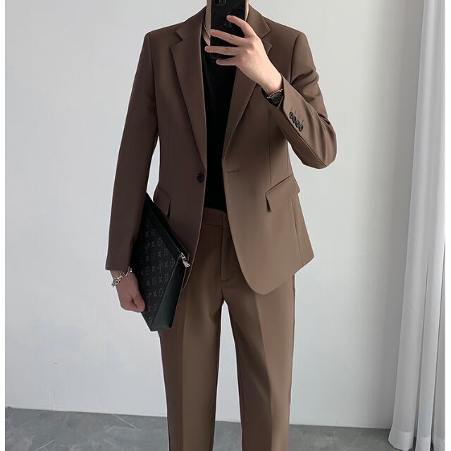 【予約販売】メンズ セットアップ スーツ 無地 ベーシック シック スリム 男前 カーキ ジャケット パンツ セット セットアップ ビジネス 通勤 フォーマル パーティ 二次会 同窓会 結婚式 韓国 トレンド 大きいサイズ M/L/XL/2XL/3XL