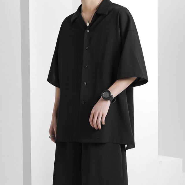 【予約販売】メンズ セットアップ 上下 ハーフパンツ 半袖シャツ 無地 ブラック ホワイト ブルー カジュアル 春夏 S/M/L/XL/2XL/3XL