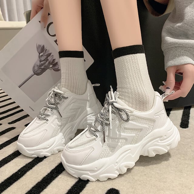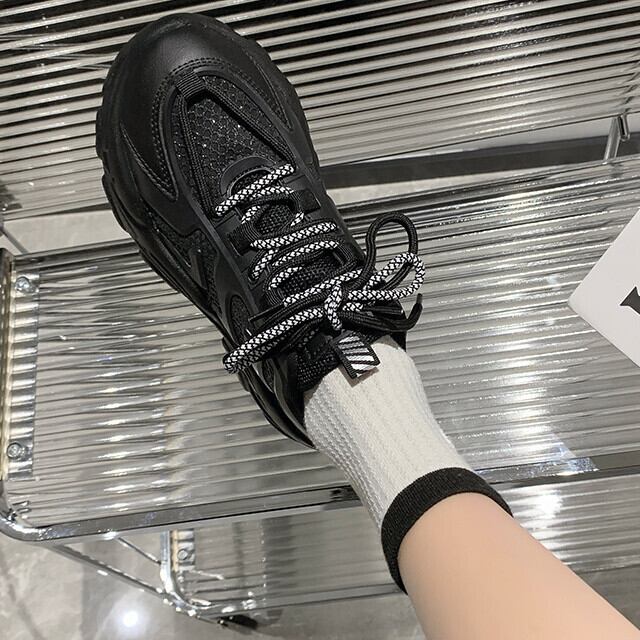 スニーカー レディース シューズ 厚底 スタイルアップ カジュアル スポーティ ストリート ブラック/ホワイト/グリーン 22cm/22.5cm/23cm/23.5cm/24cm/24.5cm/25cm