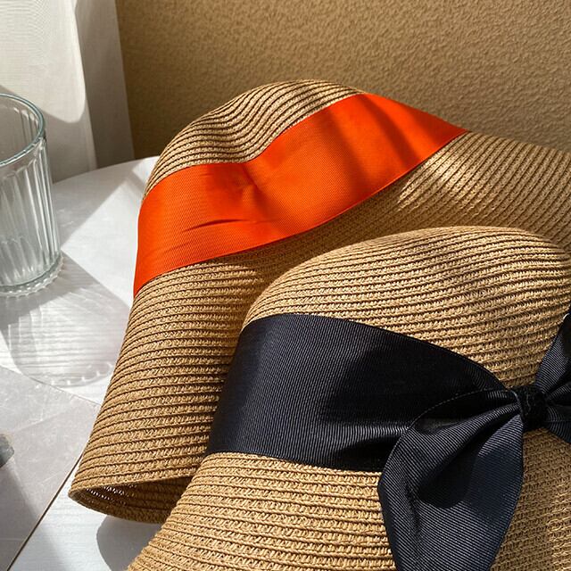 ストローハット キャペリン 麦わら帽 レディース リボン お出かけ デート ショッピング カジュアル おしゃれ ビーチ 春夏 ブラック/ブラウン