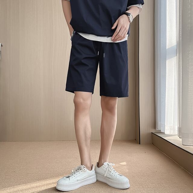 【予約販売】メンズ セットアップ 上下 ハーフパンツ 半袖シャツ 薄手 ポロシャツ 無地ブラック ネイビー ベージュ カジュアル 春夏 M/L/XL/2XL