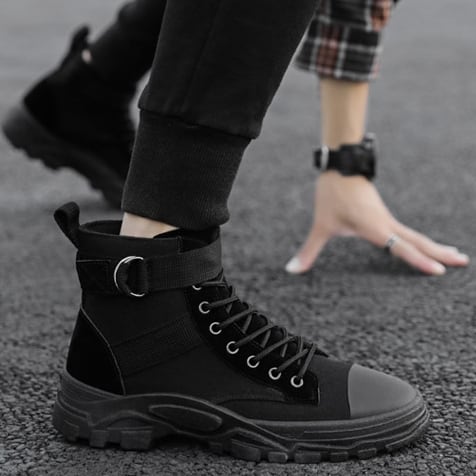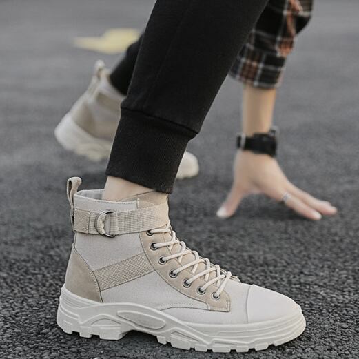 【予約販売】スニーカー メンズ ハイカット 厚底 靴 ブラック ベージュ グレー シック お洒落 カジュアル ストリート 24.5cm/25cm/25.5cm/26cm/26.5cm/27cm