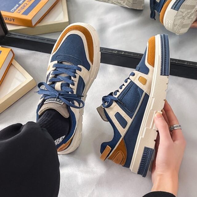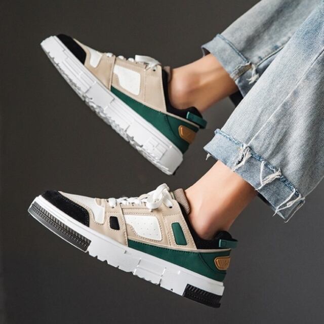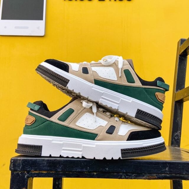 【予約販売】スニーカー メンズ シューズ 靴 グレー グリーン ブルー レトロ 配色 厚底 スポーティー 韓国 トレンド お洒落 カジュアル ストリート 24.5cm/25cm/25.5cm/26cm/26.5cm/27cm