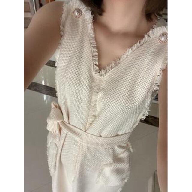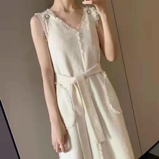 ワンピース レディース ワンピースドレス ロングワンピ ロング丈 マキシ丈 Iライン パーティ ビジュー フリンジ おしゃれ パーティ お呼ばれ ホワイト S/M/L