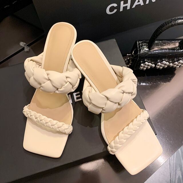 【予約販売】レディース サンダル カラーサンダル レザー オープントゥ 編み込み こなれ感 大人可愛い 韓国 全2色 ベージュ/ホワイト 春 夏 22cm/22.5cm/23cm/23.5cm/24cm/24.5cm