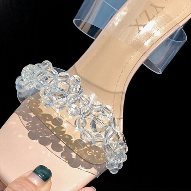 サンダル クリア スケルトン ビーズ ハイヒール レディース 春夏 おしゃれ かわいい ベージュ アプリコット 22cm/22.5cm/23cm/23.5cm/24cm/24.5cm/25cm