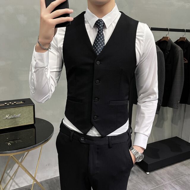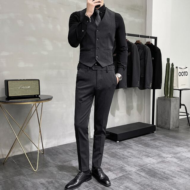 スリムなディテールのスーツとベストの3ピース!