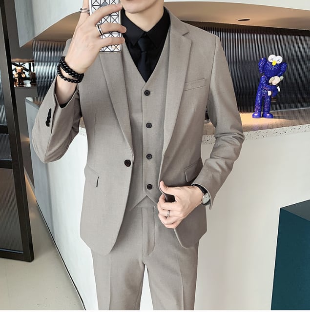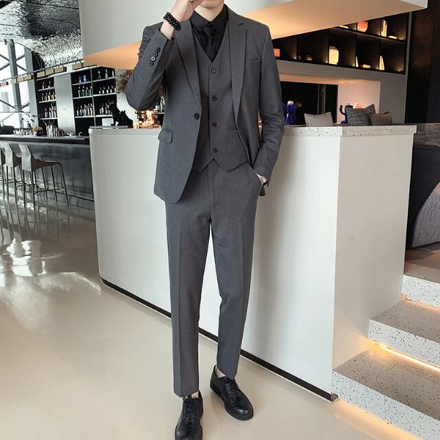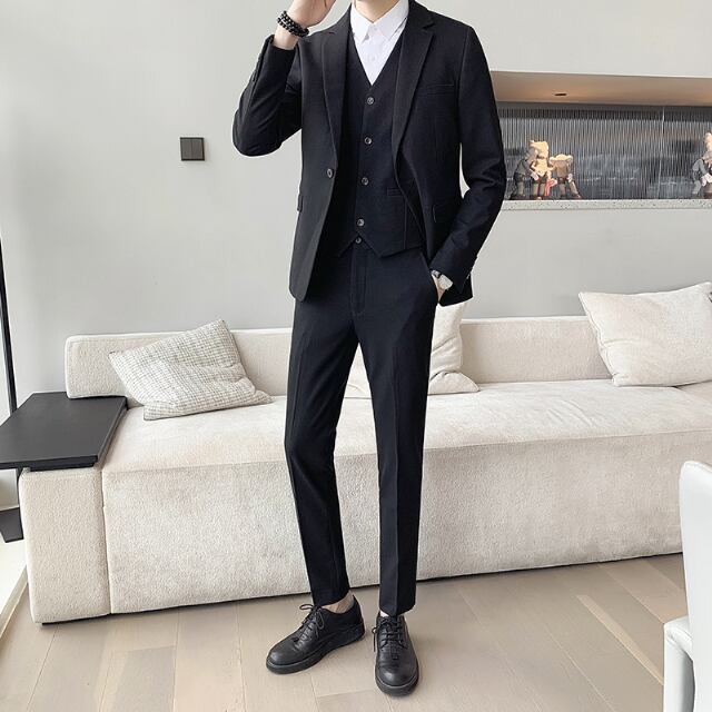 スリムなディテールのスーツとベストの3ピース!