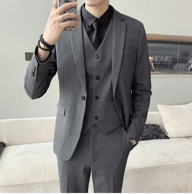 【予約販売】メンズ セットアップ スーツベスト 3ピース 無地 シングル シック スリム シンプル 韓国 男前 ブラック/ベージュ/ライトグレー/ダークグレー ジャケット パンツ セット セットアップ ビジネス 通勤 フォーマル パーティ 二次会 同窓会 結婚式 韓国 こなれ感 トレンド 春 大きいサイズ S/M/L/XL/2XL/3XL/4XL/5XL/6XL/7XL