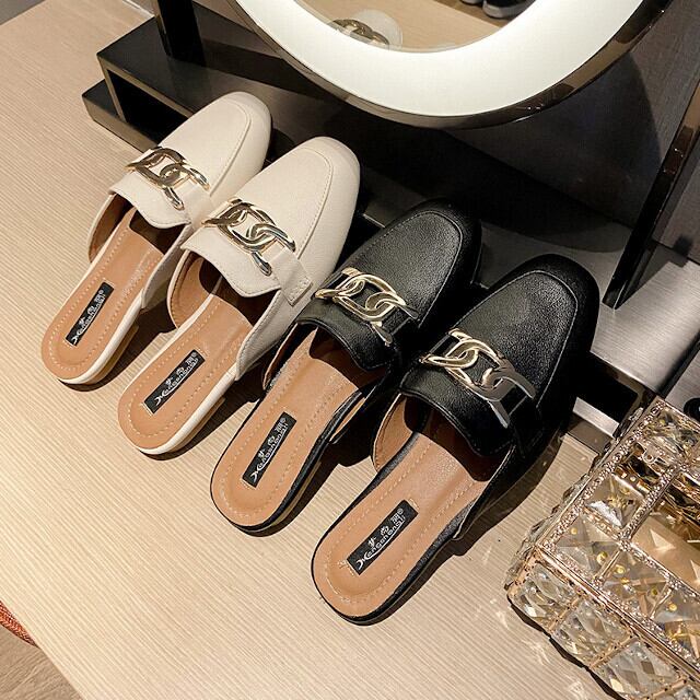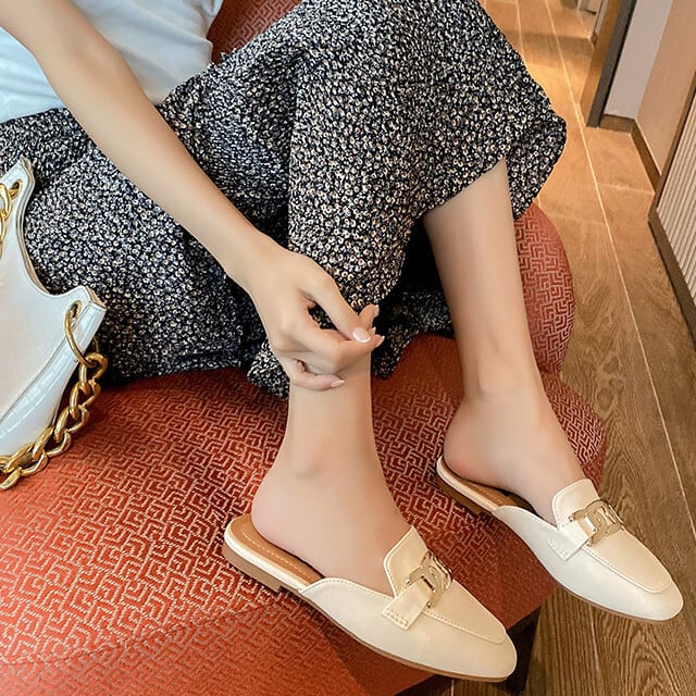 サンダル レディース バブーシュ シューズ ペタンコ ホースビット 上品 サイズ展開豊富 アプリコット/ブラック 22cm/22.5cm/23cm/23.5cm/24cm/24.5cm/25cm/25.5cm/26cm