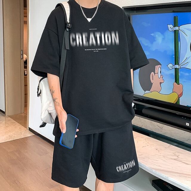 【予約販売】メンズ セットアップ スエット 上下 半袖 ハーフパンツ ストリート ホワイト/ブラック/ライトブルー/ブルー/ベージュ 部屋着 韓国 ジム スポーツウエア カジュアル 春 夏 大きいサイズ M/L/XL/2XL/3XL