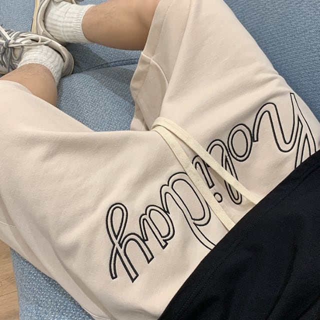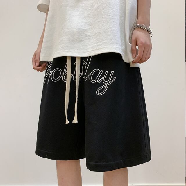 【予約販売】ハーフパンツ メンズ ストリートアメリカン HIPHOP B系 ダンス ネイビー/ベージュ/ブラック/グリーン カジュアル スエット スタイリッシュ こなれ感 お洒落 韓国 トレンド 春 秋 夏 M/L/XL/2XL