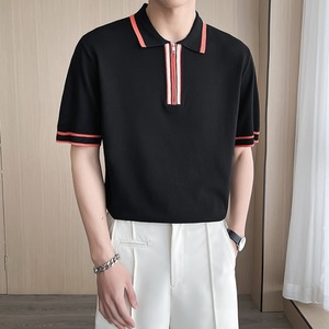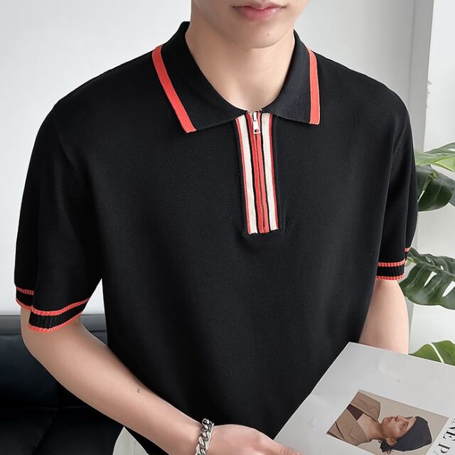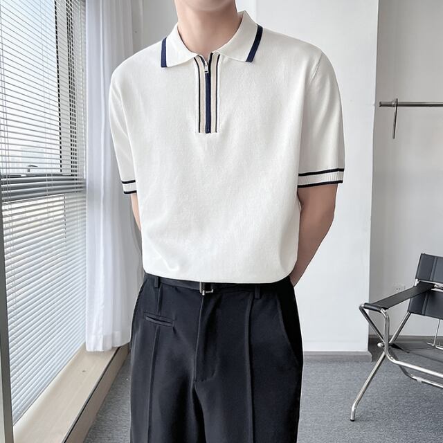 【予約販売】ポロシャツ 半袖 メンズ ホワイト ブラック ライン ストライプ 無地 こなれ感 カジュアル シンプル モード お洒落 韓国 トレンド 春 夏 M/L/XL/2XL