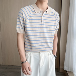 【予約販売】ポロシャツ 半袖 メンズ ベージュ ブラック ストライプ こなれ感 カジュアル シンプル モード お洒落 韓国 トレンド 春 夏 M/L/XL/2XL