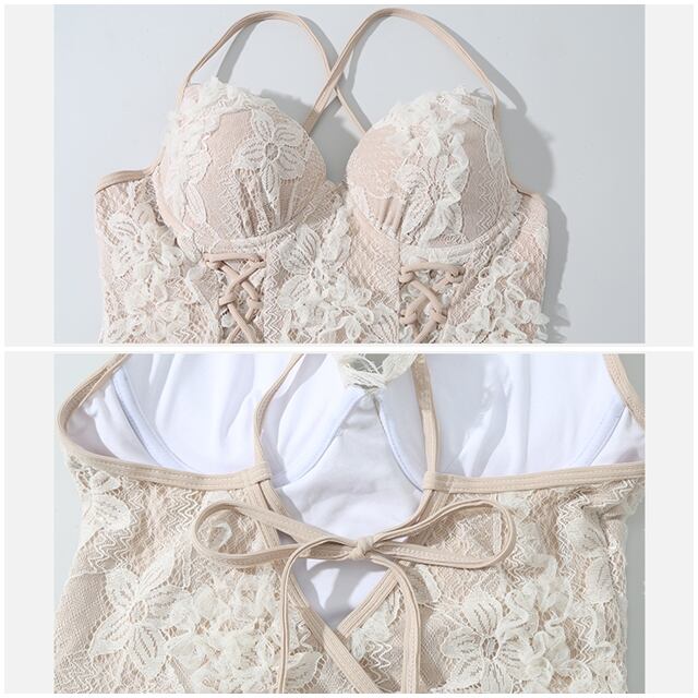 【予約販売】水着 レディース ワンピース ベージュ フラワー柄 シアー スカート フレア レース 背中見せ フリル ビーチ リゾート スイムウェア こなれ感 お洒落 韓国 トレンドM/L/XL/2XL