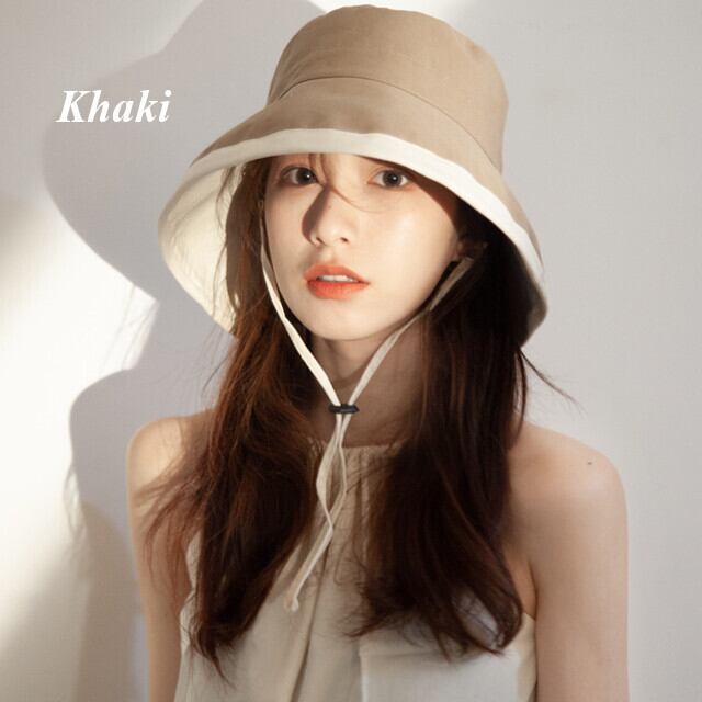 バケットハット レディース 帽子 バイカラー アウトドア キャンプ オレンジ/ブラック/ベージュ/カーキ ストリート スポーティー カジュアル こなれ感 お洒落 トレンド