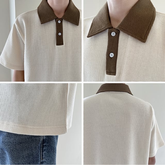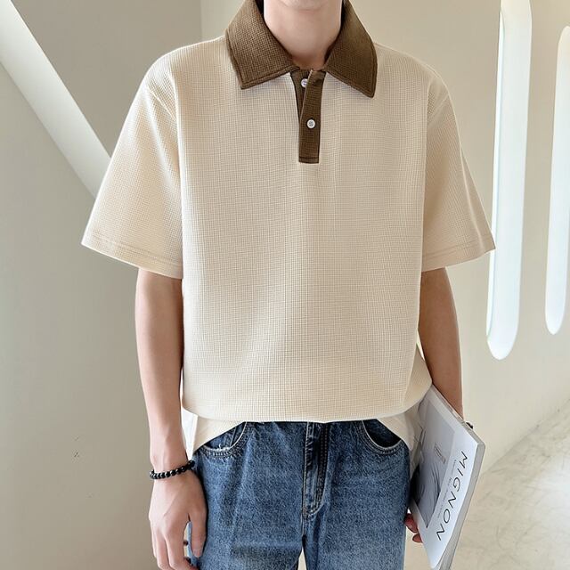 【予約販売】ポロシャツ 半袖 シャツ メンズ ベージュ アイボリー 無地 こなれ感 カジュアル シンプル モード お洒落 韓国 トレンド 春 夏 M/L/XL/2XL