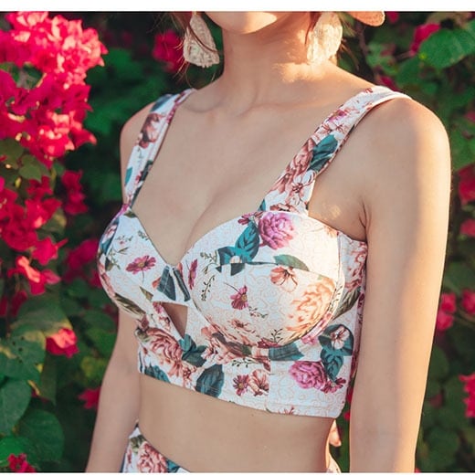 【予約販売】水着 レディース ビキニ セパレート 花柄 ローズ柄 フラワー柄 ハイウエスト リボン ビーチ リゾート 夏 海 スイムウェア こなれ感 お洒落 韓国 トレンドM/L/XL