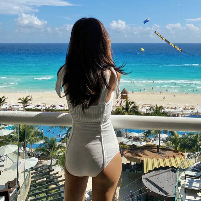 【予約販売】水着 レディース ワンピース セクシー ホワイト 白 シンプル 無地 海 夏 ビーチ プール リゾート スイムウェア 可愛い こなれ感 お洒落 韓国 トレンド M/L/XL