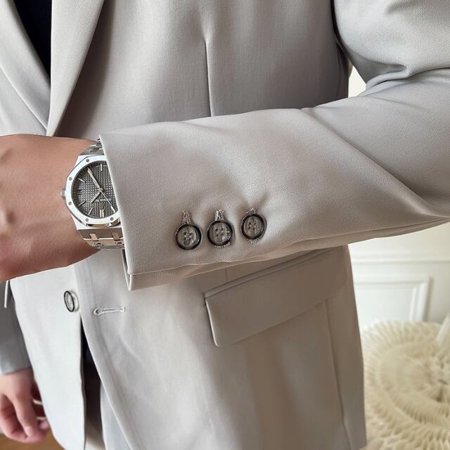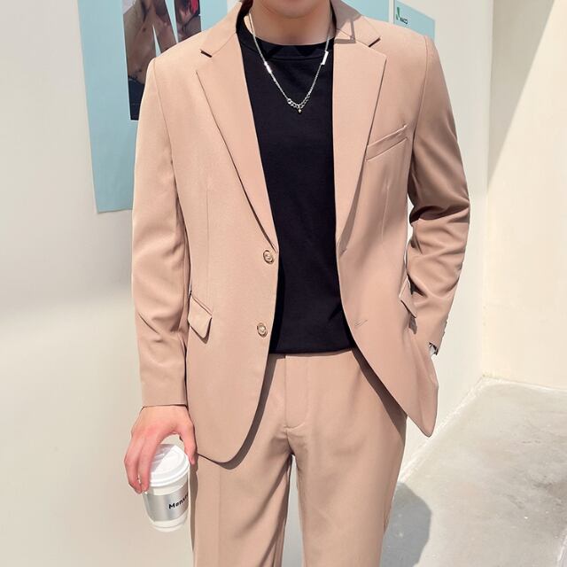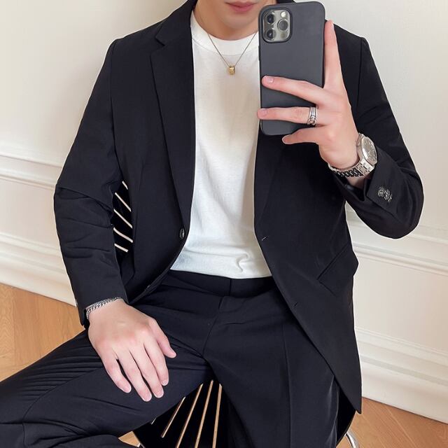 【予約販売】メンズ セットアップ スーツ 無地 背中 バックデザイン シック スリム スタイリッシュ シンプル 韓国 男前 コーヒー/グレー/ブラック ジャケット パンツ セット セットアップ ビジネス 通勤 フォーマル パーティ 二次会 同窓会 結婚式 韓国 こなれ感 トレンド 春 夏 大きいサイズ S/M/L/XL/2XL