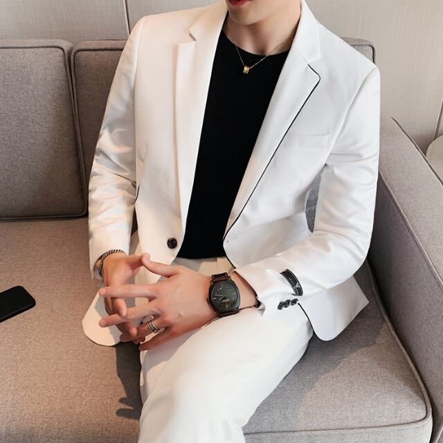 【予約販売】メンズ セットアップ スーツ 無地 長袖 スリム アシンメトリー スタイリッシュ シンプル 韓国 男前 ブラック/ホワイト/グリーン ジャケット パンツ セット セットアップ ビジネス 通勤 フォーマル パーティ 二次会 同窓会 結婚式 韓国 こなれ感 トレンド 春 夏 大きいサイズ M/L/XL/2XL/3XL/4XL