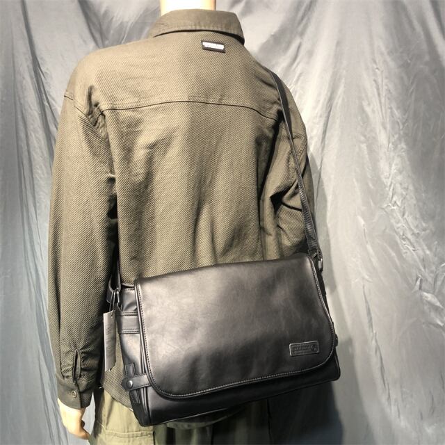 【予約販売】ショルダーバッグ バッグ レザー 斜め掛け メッセンジャー メンズ シンプル スクエア ビジネス 通勤 通学 ブラック A4 大容量 こなれ感 お洒落 韓国 トレンド