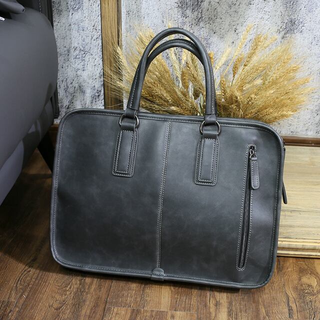 【予約販売】ショルダーバッグ ビジネスバッグ 2WAY レザー メンズ シンプル スクエア オフィス ビジネス 通勤 通学 グレー シック A4 大容量 こなれ感 お洒落 韓国 トレンド