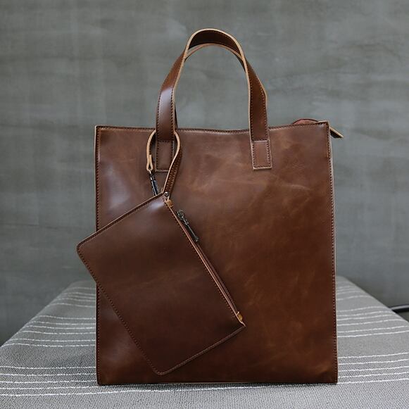 【予約販売】バッグ ビジネスバッグ レザー メンズ シンプル スクエア ビジネス 通勤 通学 ブラウン コーヒー ポーチ A4 大容量 こなれ感 お洒落 韓国 トレンド