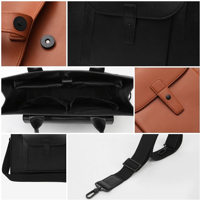 【予約販売】ショルダーバッグ ビジネスバッグ ポケット 2WAY レザー メンズ シンプル スクエア ビジネス 通勤 通学 ブラック ホワイト シック A4 大容量 こなれ感 お洒落 韓国 トレンド