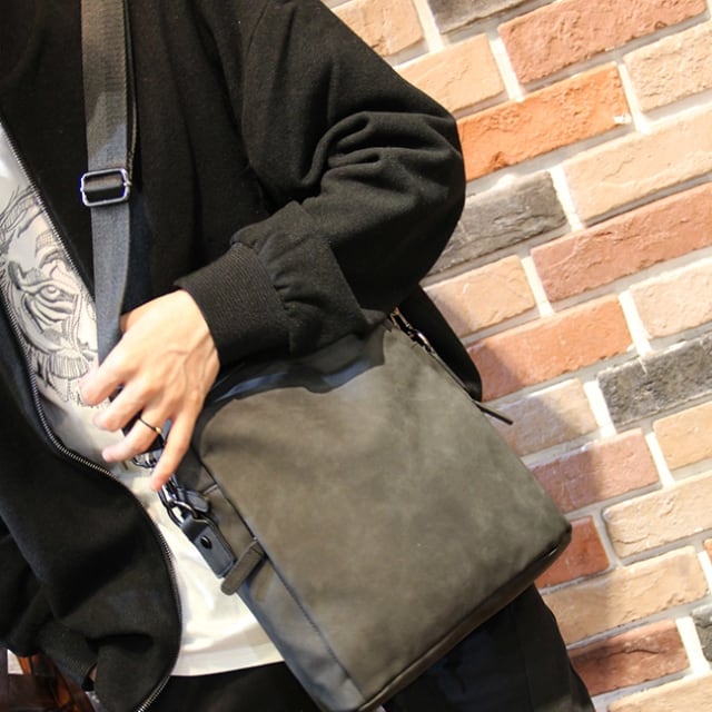 【予約販売】ショルダーバッグ 斜め掛け マット 艶なし 2WAY ビジネスバッグ グレー 牛革 レザー メンズ シンプル スクエア ビジネス 通勤 通学 大容量 こなれ感 お洒落 韓国 トレンド