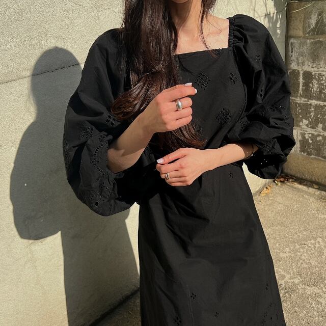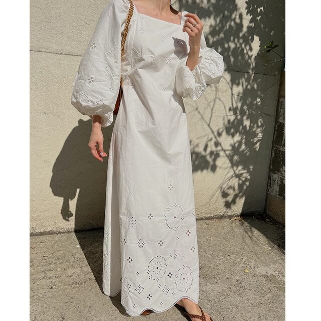 【予約販売】ワンピース レディース エスニック パフスリーブ ロングワンピース マキシ丈 ブラック 黒 イエロー ホワイト お呼ばれ 結婚式 ドレス きれいめ ワンピ 大人可愛い エレガント おしゃれ こなれ感 韓国 S/M/L