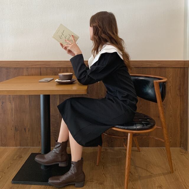 【予約販売】ワンピース レディース 襟 ビッグカラー タイト ブラック 黒 オフホワイト お呼ばれ 結婚式 ドレス きれいめ ワンピ 大人可愛い エレガント おしゃれ こなれ感 韓国 フリー