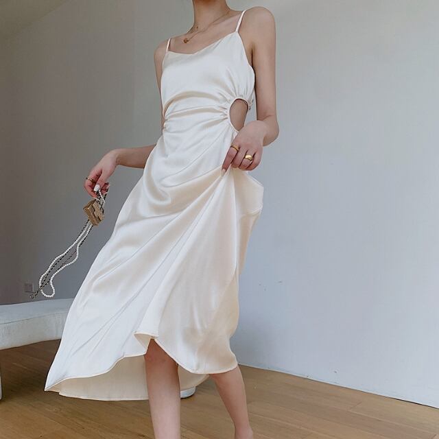 【予約販売】ワンピース レディース 華奢 スリット キャミワンピ 背中見せ 肌見せ ブラック 黒 オフホワイト セクシー お呼ばれ 結婚式 ドレス きれいめ ワンピ 大人可愛い エレガント おしゃれ こなれ感 韓国 S/M/L