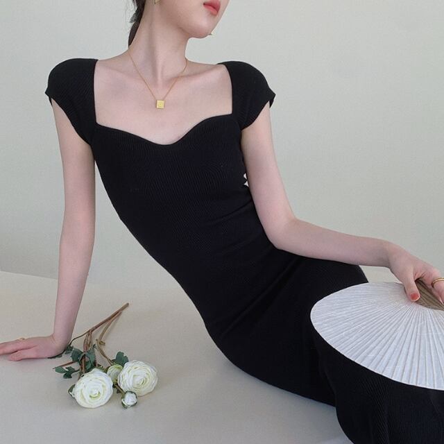 【予約販売】ワンピース レディース マーメイド タイト ノースリーブ ブラック 黒 お呼ばれ 結婚式 ドレス きれいめ ワンピ 大人可愛い エレガント おしゃれ こなれ感 韓国 S/M/L