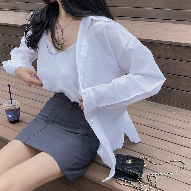 2点セット レディース ツーピース シャツ キャミソール オーバーシルエット 透け感 シースルー おしゃれ こなれ感 ブラック/ホワイト