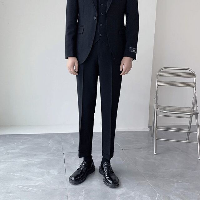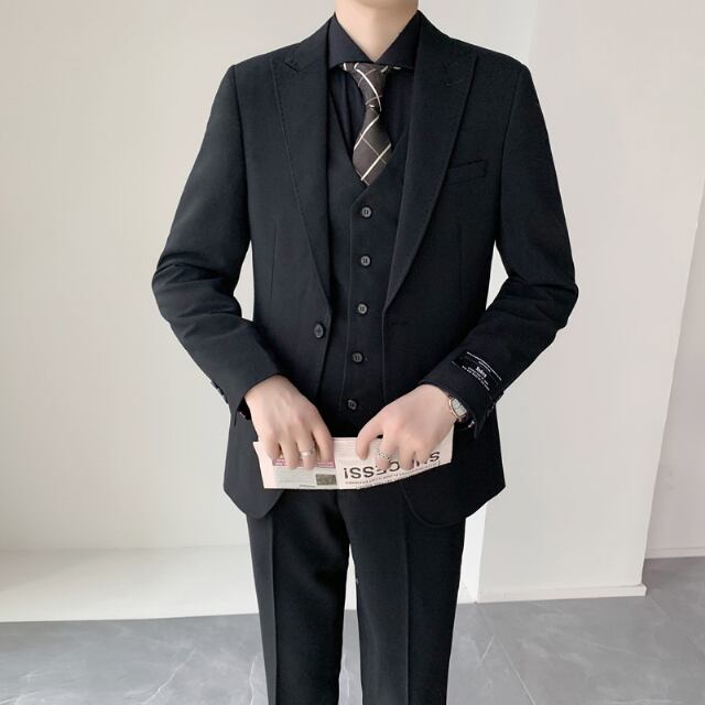 【予約販売】メンズ セットアップ スーツ ベスト 3点セット 3ピース 無地 シック スリム 男前 ハンサム 黒 ブラック 婚礼 ジャケット パンツ セット セットアップ ビジネス 通勤 フォーマル パーティ 二次会 同窓会 結婚式 韓国 トレンド 春 秋 夏大きいサイズ M/L/XL/2XL/3XL