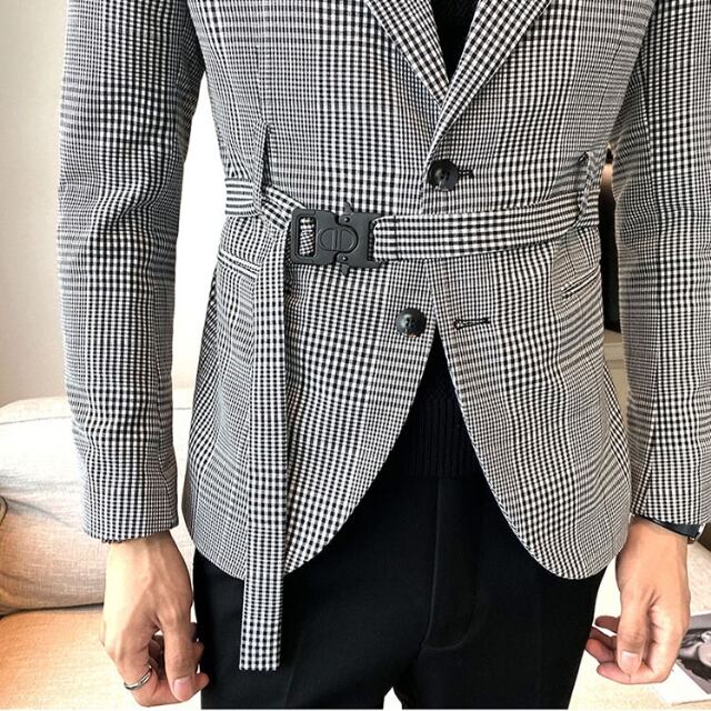 【予約販売】ジャケット 千鳥格子柄 個性的 ウエストマーク ジャケット メンズ ドレスアップ シック こなれ感 お洒落 パーティー 結婚式 二次会 パーティー エレガント 韓国 大きいサイズ 春 秋 冬 M/L/XL/2XL/3XL