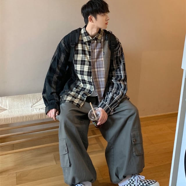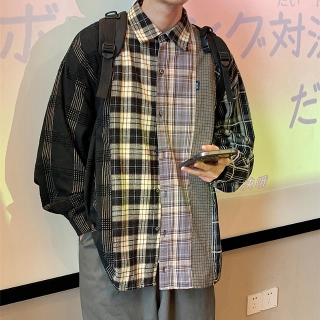 【予約販売】シャツ 長袖 ネルシャツ フランネル メンズ オーバーサイズ チェック柄 カジュアル ストリート こなれ感 お洒落 韓国 トレンド 秋冬 M/L/XL/2XL/3XL/4XL/5XL