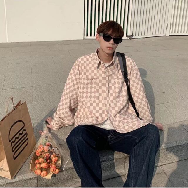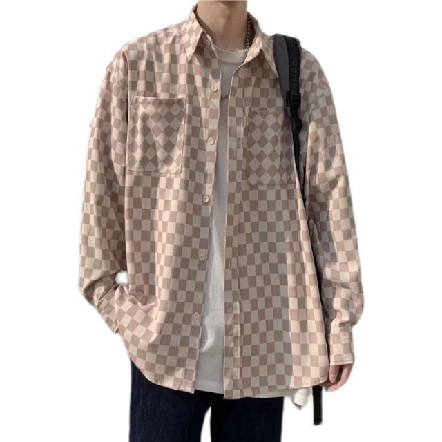 【予約販売】シャツ 長袖 ネルシャツ フランネル メンズ オーバーサイズ チェック柄 ブラック ベージュ カジュアル ストリート こなれ感 お洒落 韓国 トレンド 秋冬 M/L/XL/2XL