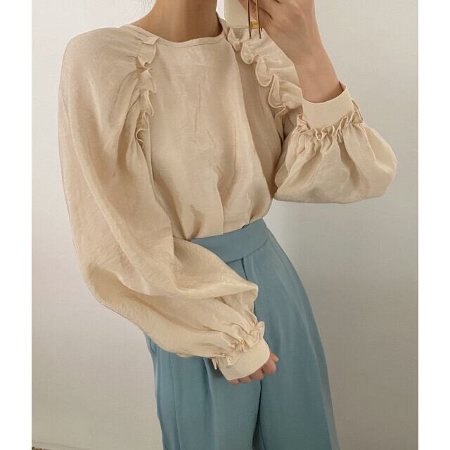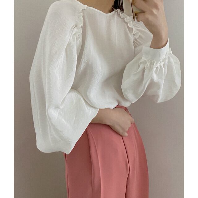 ブラウス レディース トップス とろみブラウス ボリュームスリーブ パフスリーブ バルーンスリーブ フェミニン おしゃれ 大人かわいい パープル/アプリコット/ホワイト